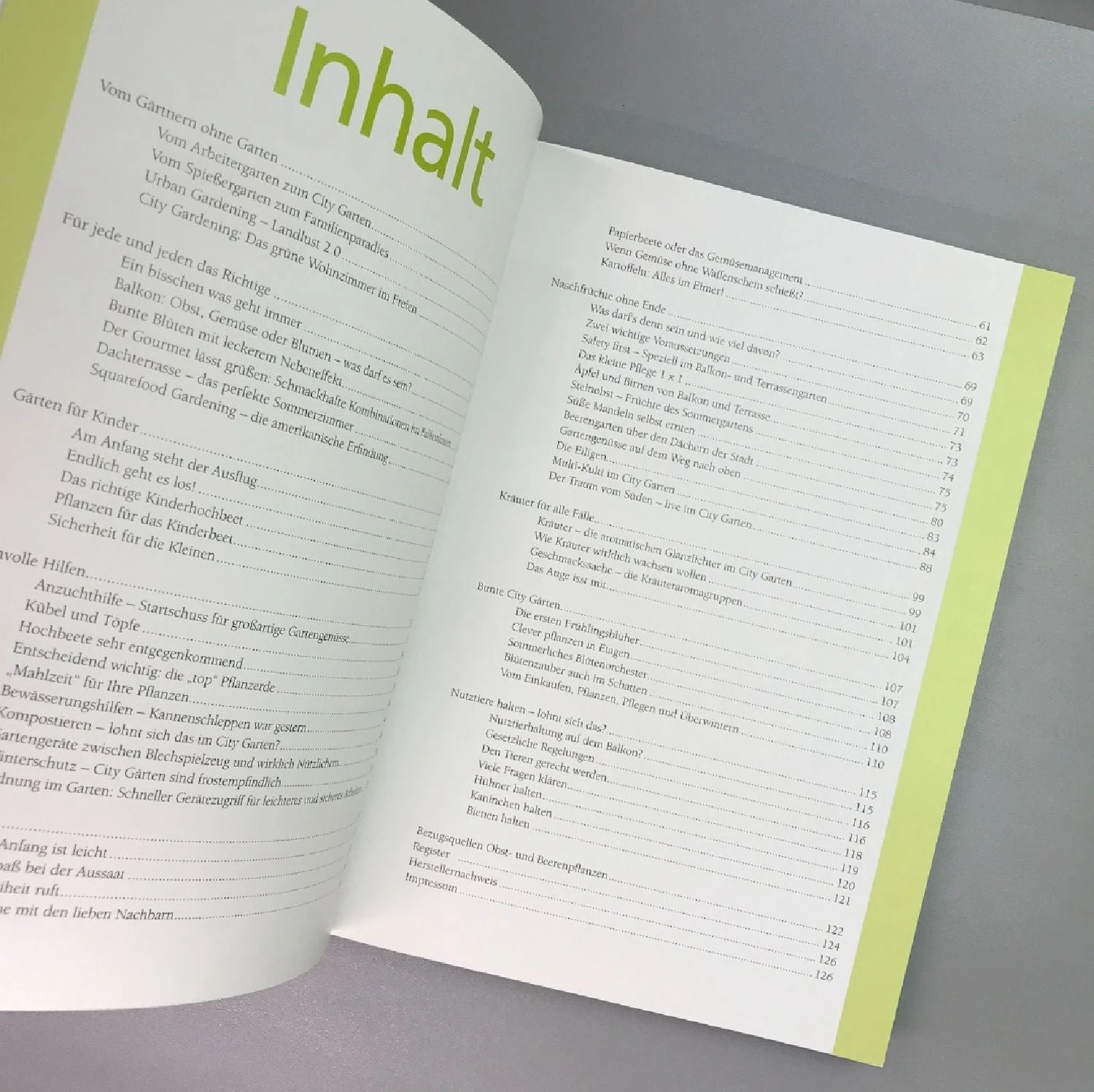 Sie erläutern grundsätzliche Entscheidungen, wie Machbarkeit und Zeitaufwand ebenso, wie wichtige erforderliche Anschaffungen, zum Beispiel Gartengeräte, Auswahl sinnvoller Töpfe und Kübel und Bewässerungscomputer. Zugleich helfen sie dem Leser, die für ihn passenden Pflanzen für seinen Küchen- und Naschgarten auszuwählen (Gemüse, Kräuter, Obst), sie richtig anzubauen und zu versorgen, auch während des Urlaubs und wenn mal nicht so viel Zeit zur Verfügung steht. Dabei bezieht der Ratgeber neben Erwachsenen auch Kinder mit ein und gibt Senioren erfolgreiche Tipps zu leichter zu bewältigender Gartenarbeit dann, wenn sie beschwerlich ist. Ein Kapitel widmet sich außerdem der Haltung von Nutztieren in der Stadt. Was ist möglich, was geht gar nicht, ist hierbei das Motto. Ein praktischer Überblick über die Erfordernisse des city-gardenings zu jeder Jahreszeit rundet die Darstellungen hilfreich ab.