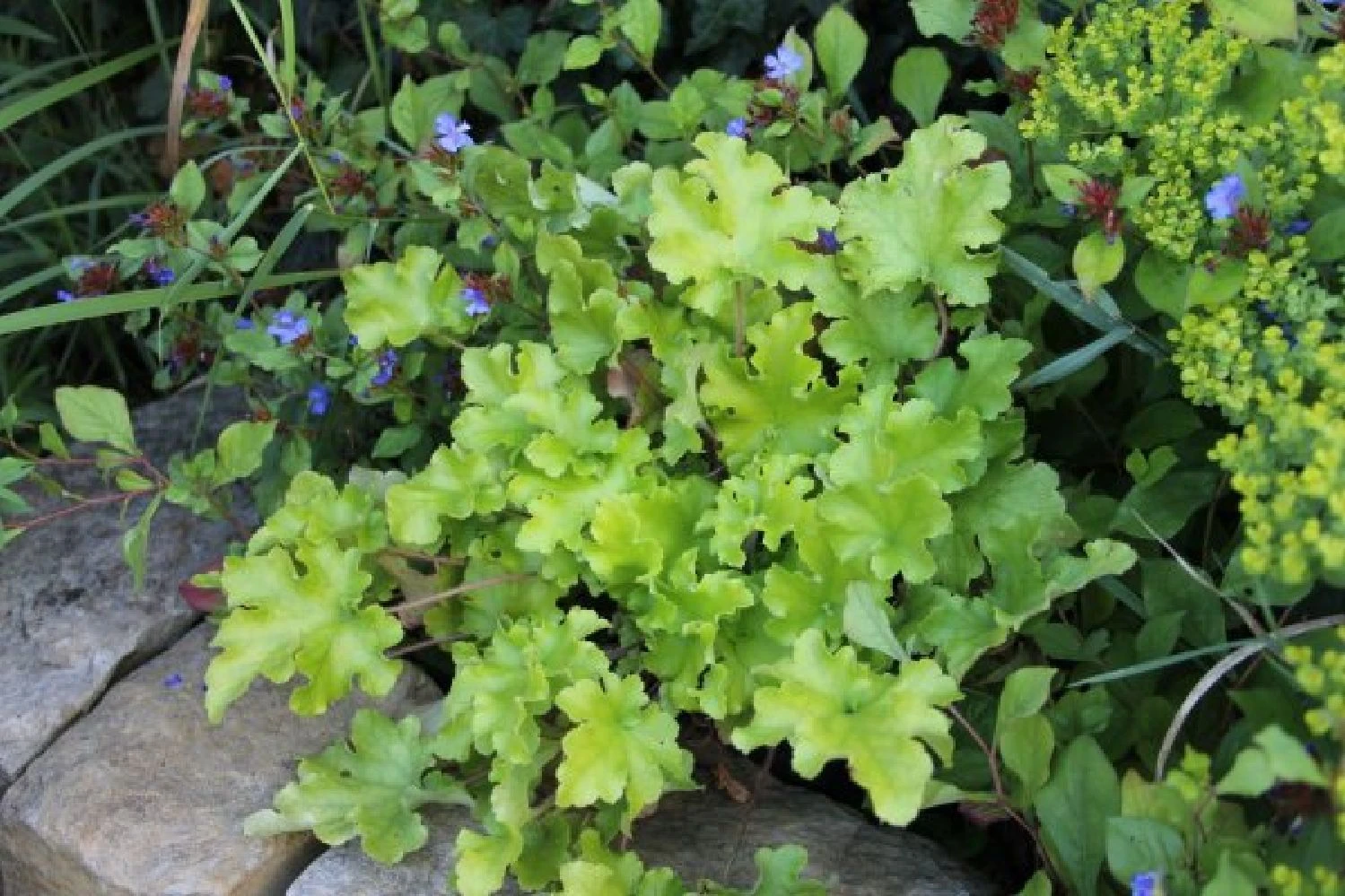 Lassen Sie sich verzaubern von einem Reigen erlesener Wald- und Gehölzrandstauden wie dem zarten Tränenden Herz, imposanten Schaublatt, weißem Eisenhut und leuchtendem Straußenfarn. Von Frühjahr bis Herbst erfreut dieses Beet mit Blüten von unterschiedlichster Form. Auch im Winter bleiben Ihnen das immergrüne japanische Goldberggras, Hirschzungenfarn, Heuchera und das polsterbildende Sternmoos erhalten und bringen die nötige Farbe in eine eher triste Jahreszeit.