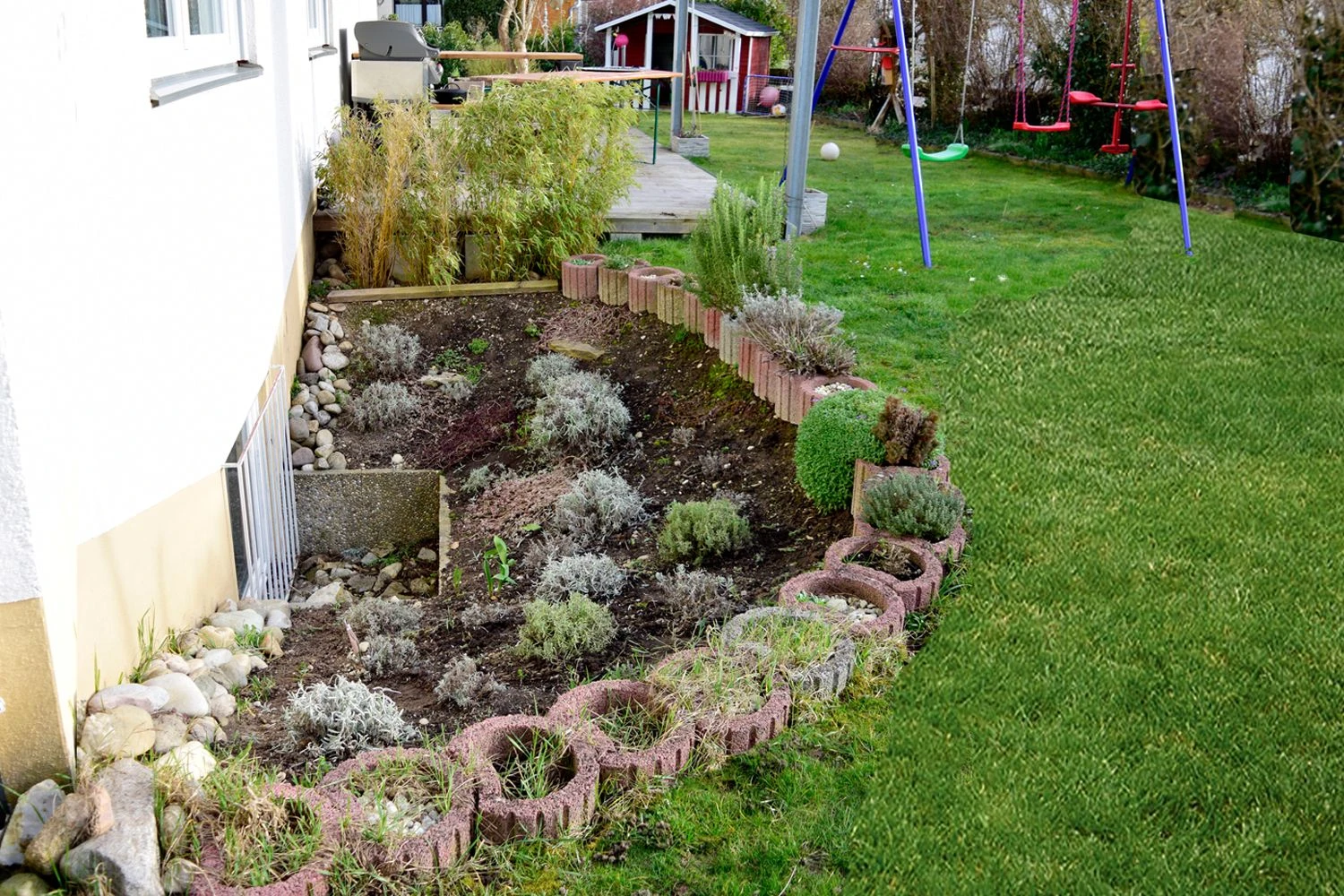 Grundstücke am Hang können einen vor ungeahnte Herausforderungen stellen. Nicht nur lässt es sich an steilen Böschungen schlecht gärtnern, auch Niederschlag droht, die Erde wegzuspülen. Ob für schräge Böschungen oder sonnige Kellerschächte wie in den zwei dargestellten Beispielen, das Beetpaket „Das Hangbeet“ bietet hier mit seiner Staudenmischung eine wertvolle Lösung. Eine ganztägige Besonnung sowie ein eher trockener Boden sind dabei für die im Paket enthaltenen stresstoleranten Pflanzen kein Problem, die gleichzeitig durch ihr Laub und Wurzelwerk den Boden schützen und festhalten.