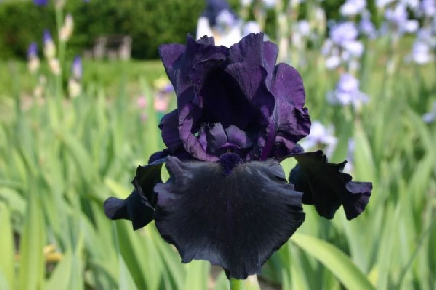 Das „Männerbeet“ spielt augenzwinkernd mit männlichen Attributen, die in Pflanzen und Farben übersetzt wurden: Da gibt es stattliche Stauden, wie die architektonische Kugeldistel, die Hohe Flammenblume, den Bartfaden und eine imposante Palmlilie, die im Hochsommer mit weißen Blütenkerzen punktet. Durch Begleiter, wie dauerblühenden Storchschnabel, Ziersalbei, Helmkraut und Katzenminze wird die Blütezeit bis in den Herbst verlängert. Blattschmuckstauden sorgen ferner für Spannung und bestechen durch attraktive Hell-Dunkel-Kontraste. Dazu zählen die feine graugrüne Rutenhirse, silberner Wermut, Wollziest, Blauschwingel oder der dunkellaubige Wasserdost. Die Blütenstars der Pflanzung aber sind eine imposante schwarzviolette Bartiris, auch Schwertlilie genannt, die im Mai mit duftenden Blüten auf hohen Stängeln aufwartet, sowie eine fast weiße, robuste Taglilie, die im Hochsommer für Blütenfülle sorgt und in der Dämmerung leuchtet. Und was Mann (und natürlich auch Frau!) gefällt, ist auch für die Insektenwelt eine Wohltat. Von Mai bis Oktober finden Bienen, Hummeln und Schmetterlinge Nahrung an den Blütenstauden. Höchste Zeit, den summenden Garten zu genießen und sich bei einem kühlen Bierchen entspannt zurückzulehnen.
