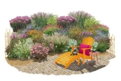Das Zeppelin-Beetpaket ‚New German Style‘ ist hier ein idealer Partner. Dieser Bepflanzungsstil zeichnet sich durch einen pflegeleichten Mix aus Stauden und Gräsern aus und sorgt für ein zauberhaftes, naturnahes Bild. Auch farblich passt die Pflanzenzusammenstellung perfekt zum lachsfarbenen Klinker des Gebäudes. Ab Juni beginnt das Beet mit einem Blütenreigen, der bis weit in den Herbst hinein anhält.
