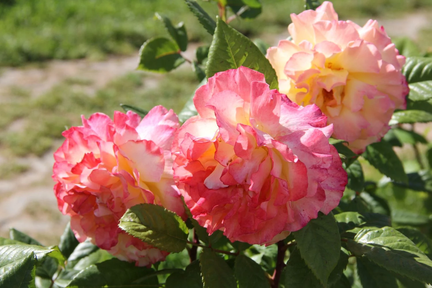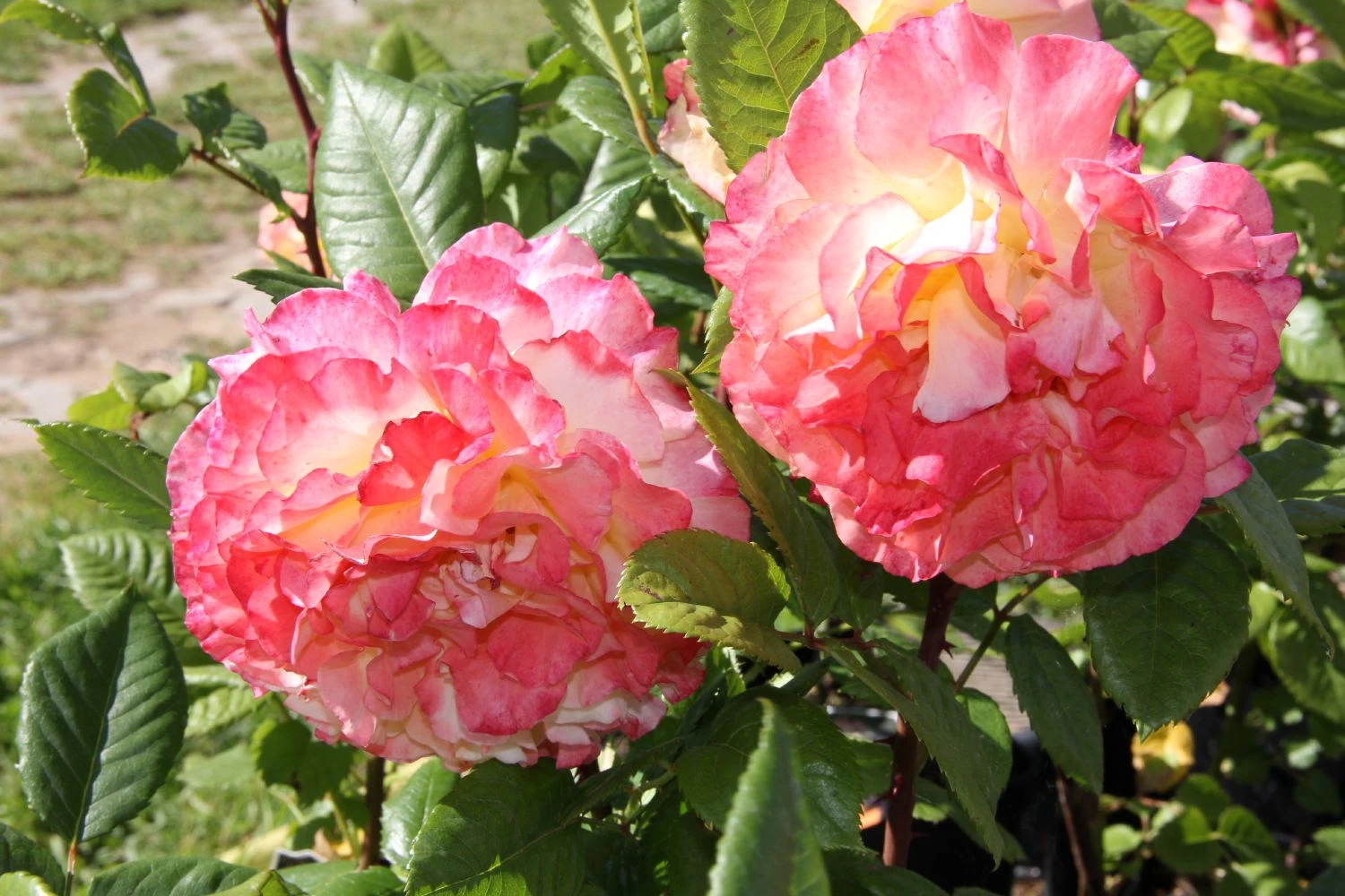 Nostalgie-Edelrose in rot und pfirsichgelb
