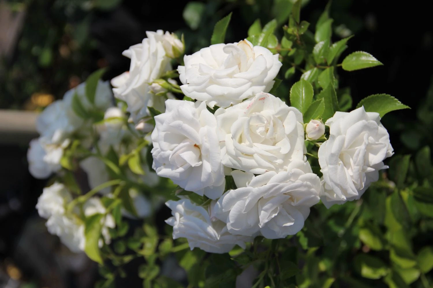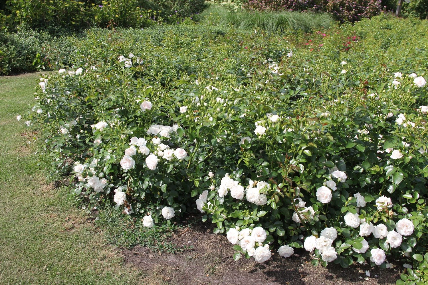 Die Rose ‚Aspirin-Rose‘ ist eine weiße Bodendeckerrose und changiert bei kühler Witterung romantisch ins Rosé.